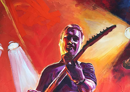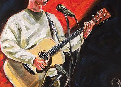 The guitarist getting ready, acrylic on canvas, 24" x 18", 2017, sold.